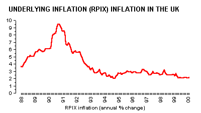 underlying rate of inflation, known as RPIX, was originally set a target of