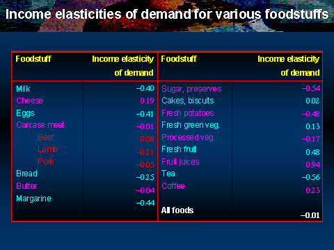 income elasticities of demand are shown in the table overleaf: